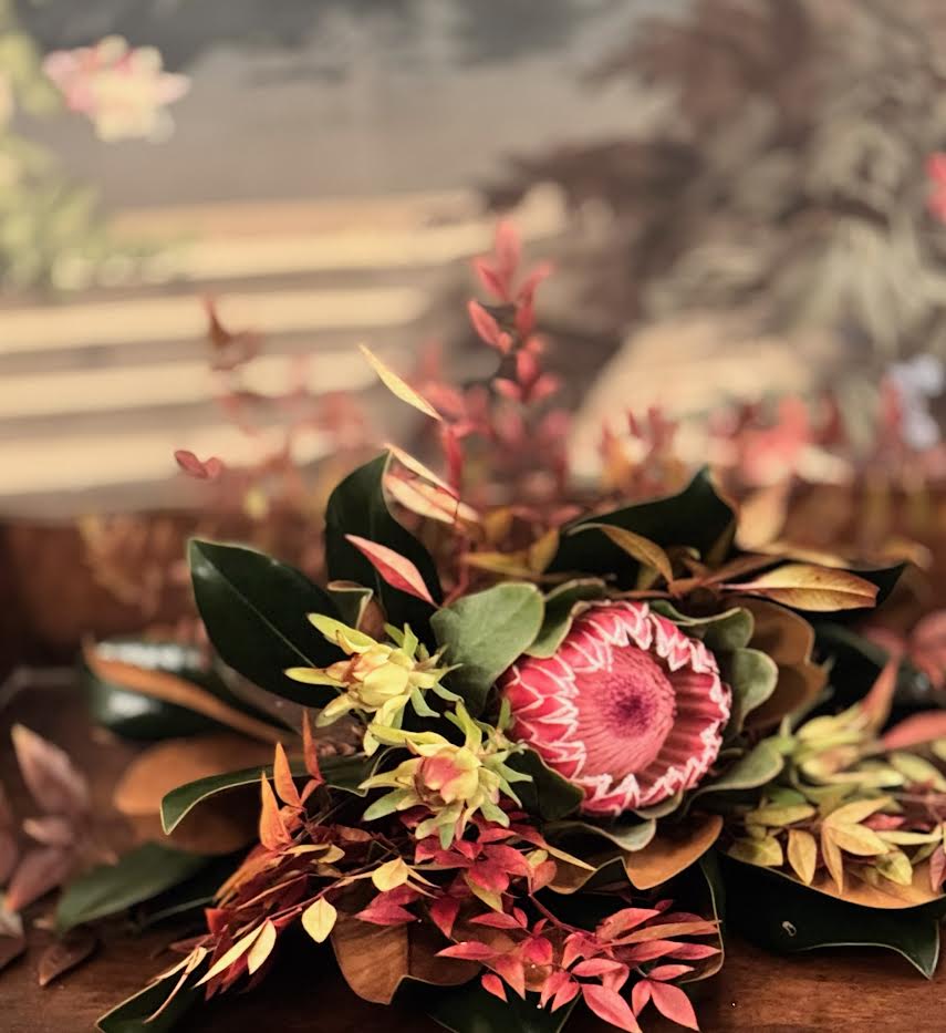 Handcrafted magnolia wreaths and bouquets from Weston Farms × Kimberly Whitman collaboration. Every purchase provides meals through Feeding America. Beauty with purpose for holiday gifting.