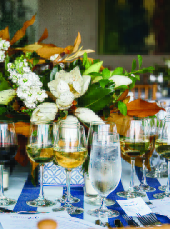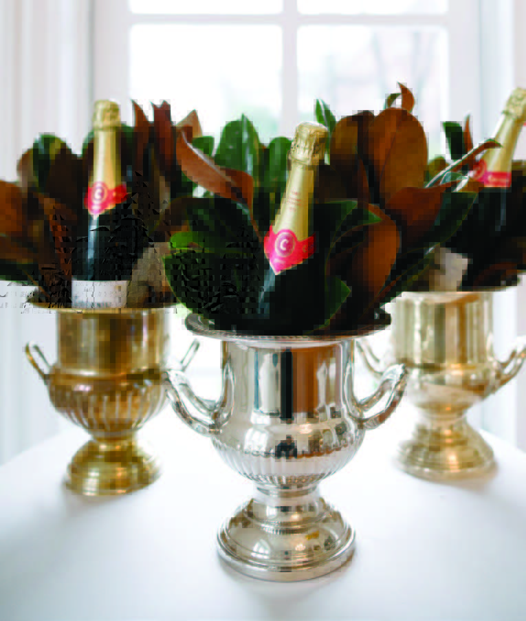 Clockwise: Draping the stairwell and on a mantel at Merrimon Wynne house; Magnolia installation at the Currey & Company showroom, High Point; Gift ideas from Momento & Muse, Tables at Atlanta Food and Wine Festival with Waiting on Martha.
